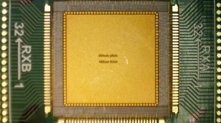 The new system they developed is a chirped data acquisition system (cDAQ) that consists of an ultrasound probe and a motherboard that processes the data. The probe, which is a little smaller than a deck of cards, contains an ultrasound array arranged in the shape of an empty square, a configuration that allows the array to take 3D images of the tissue below.